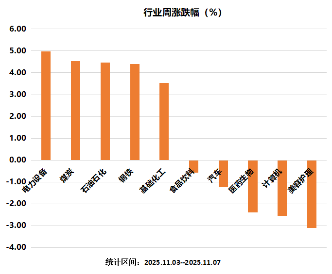 行业方面,本周申万一级行业涨跌接近6/4开,整体赚钱效应一般,其中在上周末海外市场爆出电力紧缺“AI的尽头是电力”事件后,本周大A相关行业集体被带旺,首当其冲的是电力设备,此外比如煤炭等能源类行业闻风走强,详细数据大伙看下图:
