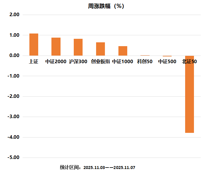 截至周五收盘,各大宽基指数除北证50深蹲3.79%外,其余指数稳中有升,详细数据如下: